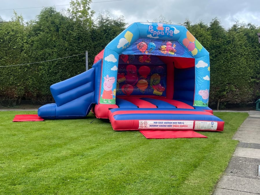 Booking our Side Slide Peppa Pig Bouncy Castle for hire in Northern Ireland is simple and hassle-free. Just give Stephen a call at 07864061033 or drop us an email at mideastantrim@gmail.com. Our friendly team is ready to assist you with any queries and help you make your event a fantastic success.