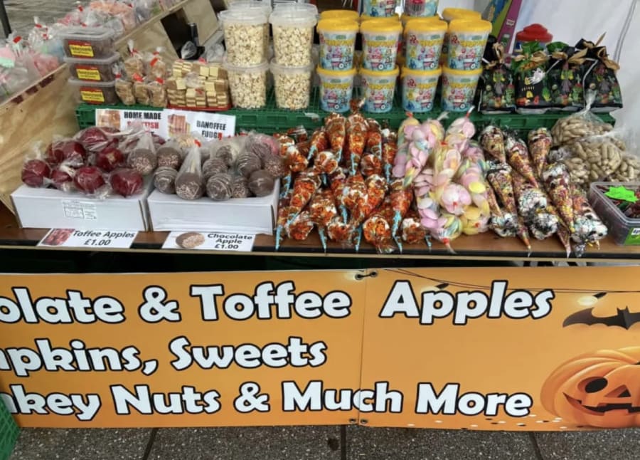 Our stall is packed with a tempting selection of treats that cater to all tastes. Enjoy bagged sweets, fluffy candy floss bags, and crunchy popcorn tubs. Indulge in the nostalgic flavors of boiled sweets and honeycomb or savor the rich tastes of toffee, chocolate, dark chocolate, and caramel. For a festive twist, don't miss our novelty apples, monkey nuts, and pumpkins! 🎃