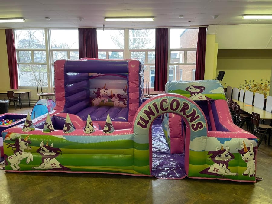 Are you looking for a fun and enchanting way to entertain your little ones? Our Unicorn Play Park for hire in Northern Ireland is the perfect choice! 🦄✨ This magical play park is designed to provide endless entertainment and adventure for toddlers. Measuring 15 x 15ft, it features a bouncy castle area, up & over slide, and a ball pool. It's an ideal spot for kids to explore, play, and let their imaginations run wild!