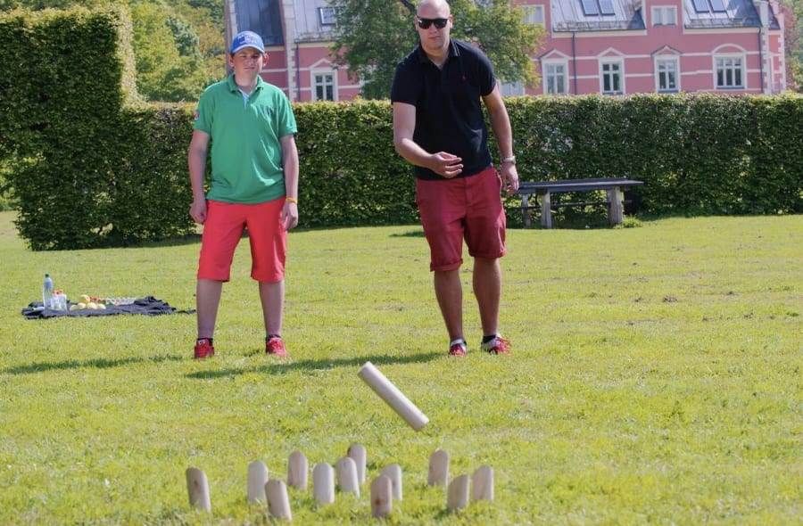 Gather a group of two or more and set up your playing area with the number pins (1-12) arranged strategically. Players take turns throwing from a distance of approximately four meters, aiming to topple the pins with underarm throws. Score points based on the numbers on the fallen pins or the total knocked down. Remember, three misses lead to elimination! The first player to score exactly 50 points wins, but exceeding 50 incurs a penalty. 🏆