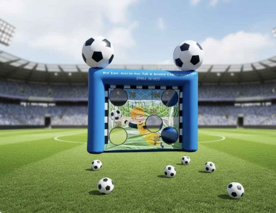 To book our amazing inflatable football shootout game simply call Stephen on 07864 061033 or email us at mideastantrim@gmail.com